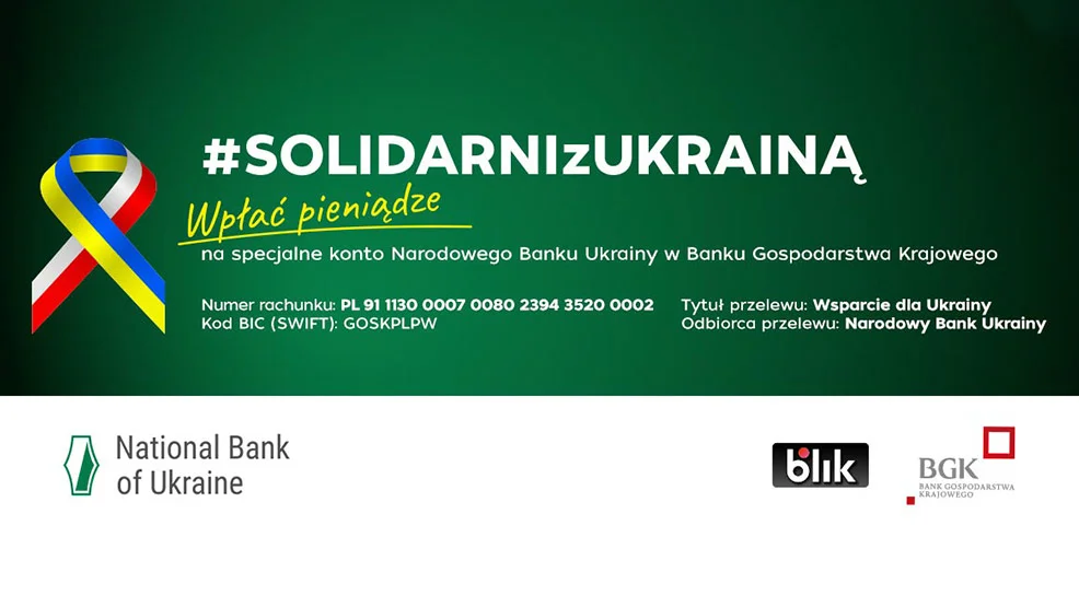 Tak. Ta pomoc i wsparcie dla naszych sąsiadów jest dzisiaj potrzebą numer jeden. Bank Gospodarstwa Krajowego mocno zaangażował się w pomoc uchodźcom. W imieniu Narodowego Banku Ukrainy (NBU) otwarliśmy specjalne konto, na które można już wpłacać pieniądze na pomoc naszym sąsiadom, a wszystkie wpłaty trafią bezpośrednio do Narodowego Banku Ukrainy, który przeznaczy je na potrzebne działania. Możliwość wpłat na to konto poprzez swój system uruchomił już także BLIK.