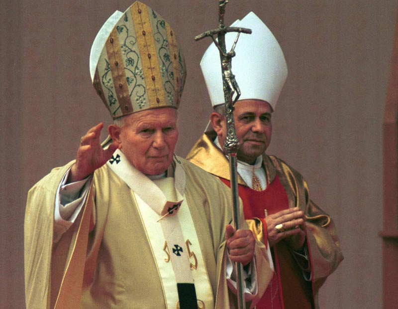 Eugeniusz Małecki wita Jana Pawła II w Kaliszu. fot. Sanktuarium św. Józefa w Kaliszu
