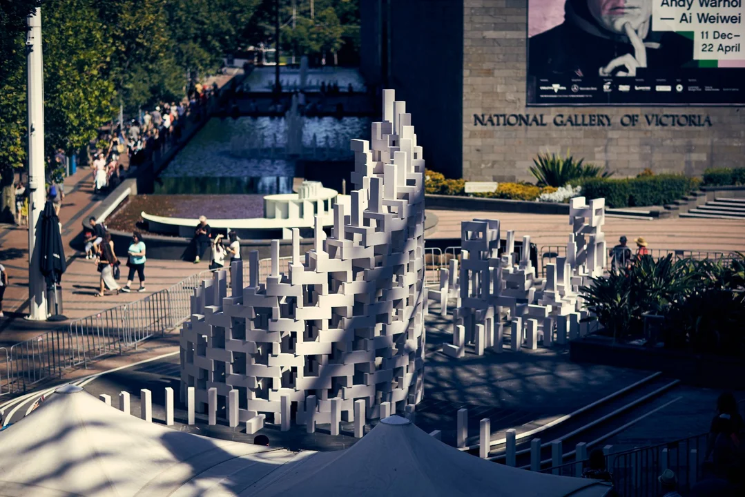 Tysiące bloków wiatrowych tworzą ruchomą rzeźbę, która przemierza miasto, rozwijając się w przestrzeni.Rzeźba wędruje przez ulice, parki, budynki, a nawet centra handlowe, czasami znikając, by potem wynurzyć się i zatrzymać - informują organizatorzy festiwalu.