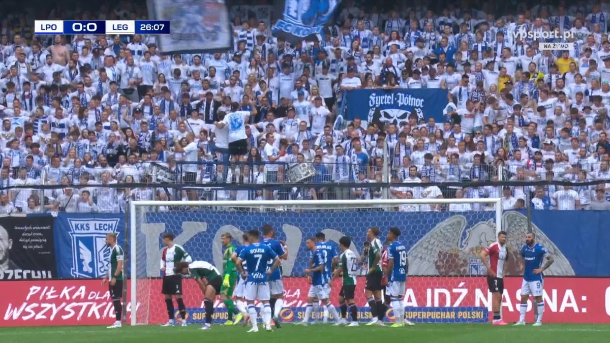 90’ + 3 Rzut wolny dla Lecha. Wzrutka w pole karne wybita przez graczy Legii. Próbował jeszcze z dystansu Ishak, ale bez większych problemów Tobiasz.