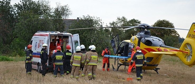 Helikopter wylądował na polu. Miejsce lądowania zabezpieczyli strażacy z JRG Gostyń oraz OSP Poniec.