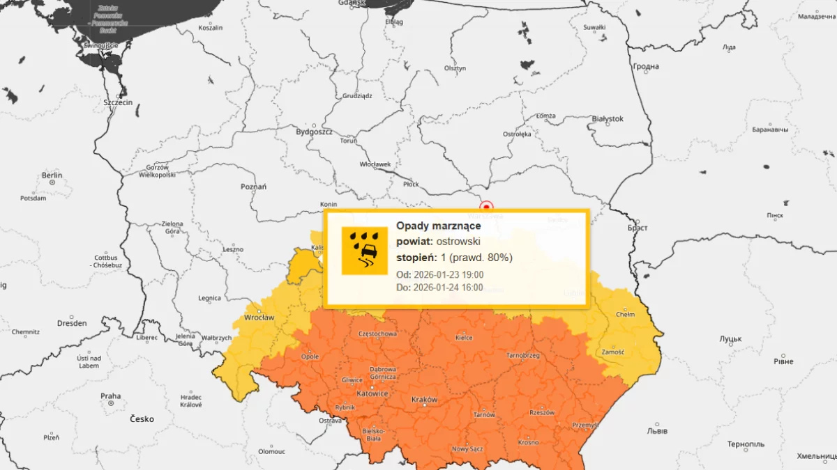 Deszcz i mżawka w kontakcie z wychłodzonym podłożem opady będą zamarzać, tworząc niebezpieczną, niewidoczną warstwę lodu. Służby apelują do kierowców o zdjęcie nogi z gazu, a do pieszych o zachowanie szczególnej ostrożności na chodnikach.