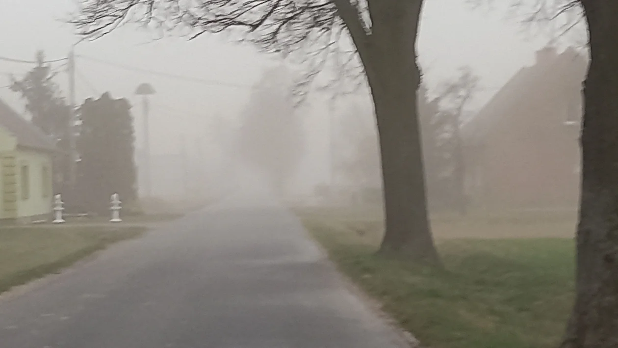 Od dłuższego czasu nie spadła ani kropla deszczu. Na polach jest bardzo sucho. Silny wiatr przenosi pył i piasek z okolicznych pól na drogi, co bardzo ogranicza widoczność. W takich warunkach nie trudno o utratę panowanie nad pojazdem, a w konsekwencji wypadek. Z kolei pieszym, którzy poruszają się w takich warunkach trudno się oddycha. Susza i silny wiatr sprzyjają powstawaniu zamieci i burz piaskowych lub pyłowych. Chociaż dotąd były one zjawiskiem rzadkim, to jednak i występują w naszej okolicy. Przykładem jest nagranie, które otrzymaliśmy od naszej Czytelniczki z Dobieszczyzny.