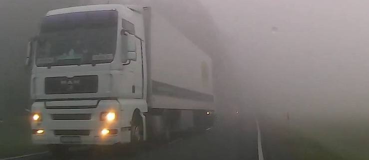 Gęsta mgła ograniczała widoczność, która momentami spadała do kilkudziesięciu metrów. W takich warunkach omal nie doszło do czołowego zderzenia ciężarówki z samochodem osobowym.