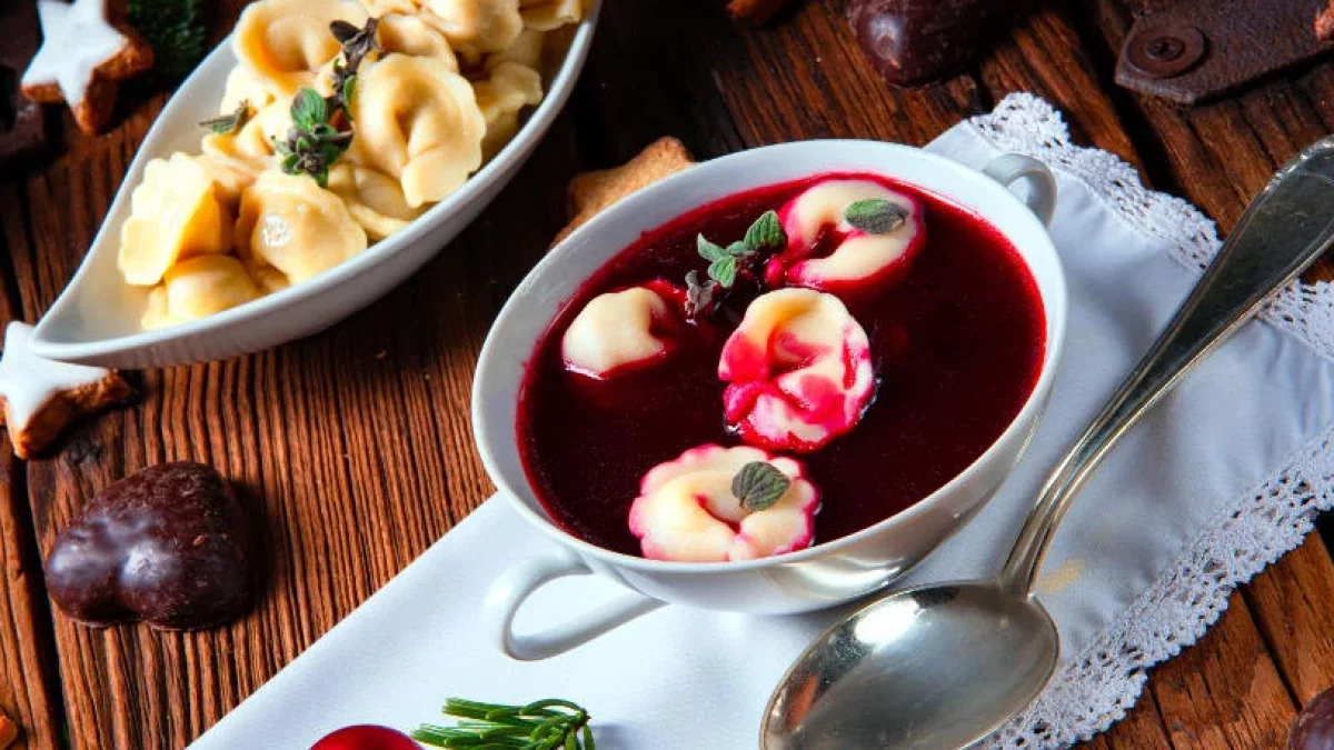 Na wielu stołach pojawia się barszcz czerwony z uszkami - klarowny, aromatyczny i przygotowany na naturalnym zakwasie. Kolor buraków symbolizuje życie, siłę i radość, a uszka z grzybami dodają potrawie wyrazistości.
