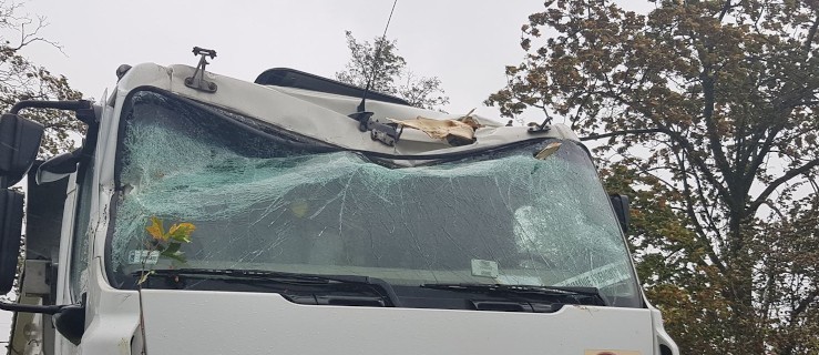 Z kolei w Czarnuszce (powiat pleszewski) udzielali pomocy kierowcy tira. Gałąź przebiła dach szoferki w odległości zaledwie 15 cm od głowy kierowcy.