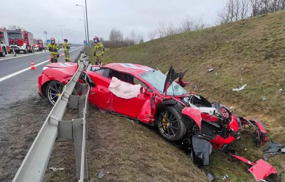 Z nieznanych przyczyn kierowca czerwonego pojazdu marki Ferrari stracił panowanie nad pojazdem i uderzył w bariery ochronne. Na szczęście nikt nie ucierpiał. Ruch na drodze odbywa się płynnie.