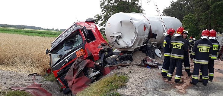 Pomiędzy Dąbrówką a Borkiem Wlkp. zderzyły się dwa samochody ciężarowe – cysterna i tzw. wanna do transportu kruszywa.