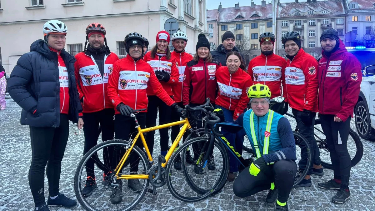 To nie jest zwykła wycieczka rowerowa. Uczestnicy Wielkoorkiestrowej Sztafety Cyklistów z Kalisza wiozą do warszawskiego studia WOŚP coś wyjątkowego - czek na kwotę 50 000 złotych.