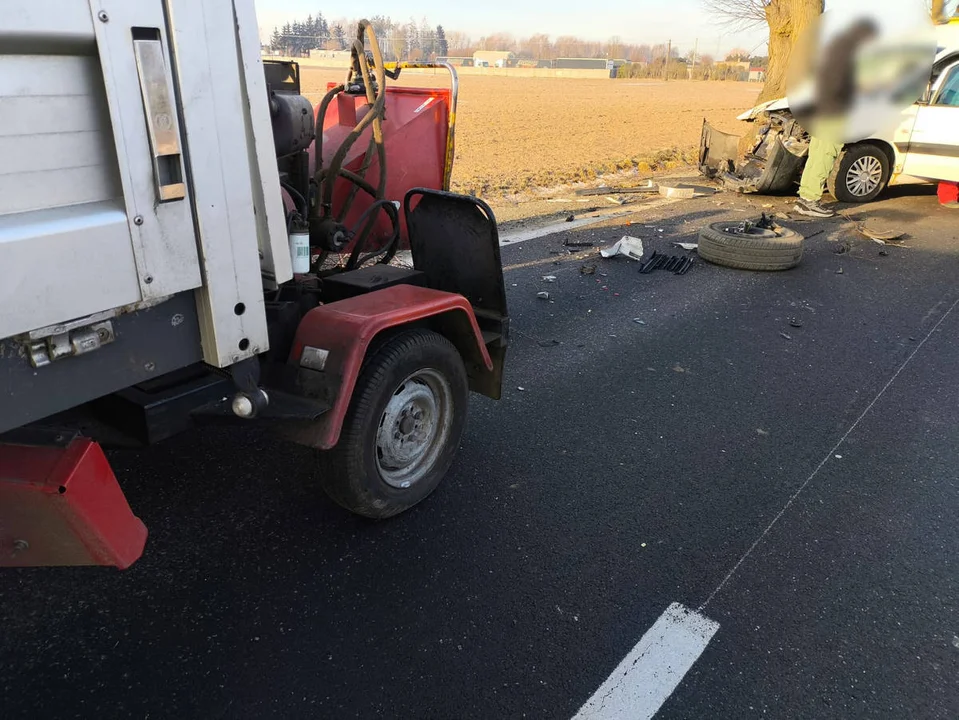 Przy maszynie stał mężczyzna, który wykonywał prace na zlecenie Wielkopolskiego Zarządd Dróg Wojewódzkich w Poznaniu. Został potrącony.