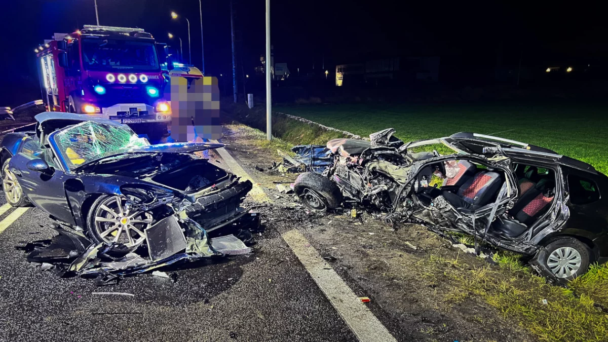 Ze wstępnych ustaleń policjantów pracujących na miejscu zdarzenia wynika, że doszło do zderzenia czołowego dwóch pojazdów - przekazuje funkcjonariuszka. - W wyniku tego zdarzenia śmierć na miejscu ponieśli kierujący pojazdami - 34-latek jadący porsche oraz 62-latek, który kierował dacią. Trzech pasażerów dacii - byli to dorośli mężczyźni - przetransportowano do szpitala. Z tego, co na chwilę obecną wiadomo, ich życiu nie zagraża niebezpieczeństwo - przekazuje mł. asp. Anna Klój.