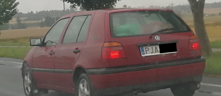 Na fotografiach, które przesłał czytelnik Szymon na fanpage MotoSygnały, widać jak czerwony Volkswagen Golf jedzie odcinkiem tzw. starej 11 na wysokości Mieszkowa. Nie byłoby w tym nic dziwnego, gdyby nie tylna szyba samochodu. A dokładniej to, co się za nią znajduje..