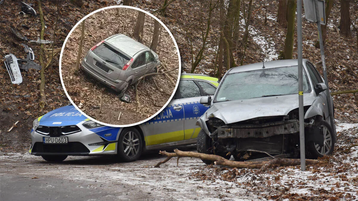 Gostyńscy policjanci od rana otrzymywali sygnały od użytkowników drogi, którzy zauważyli „przyklejony” do skarpy pojazd. Co z kierowcą? Przez kilka godzin był, jak Yeti - służby i mieszkańcy przejeżdżający obok samochodu, o nim mówili, ale nikt go nie widział. Podobnie, jak tablic rejestracyjnych. Między drzewami pozostał samochód marki Ford, wewnątrz otwarte poduszki powietrzne. Dookoła leżały elementy karoserii.