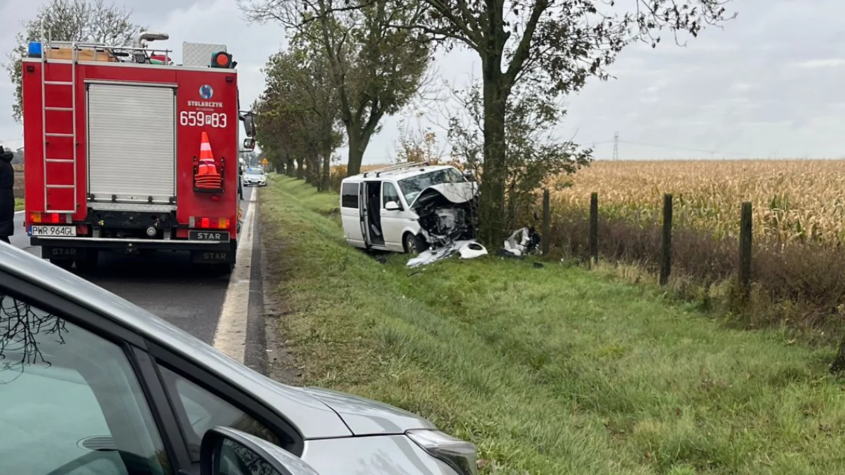 Kierujący Volkswagenem Caravelle typu bus, jadąc w kierunku Wrześni, z nieustalonych przyczyn zjechał na lewą stronę i uderzył w drzewo - relacjonuje asp. Adam Wojciński, oficer prasowy Komendy Powiatowej Policji we Wrześni.