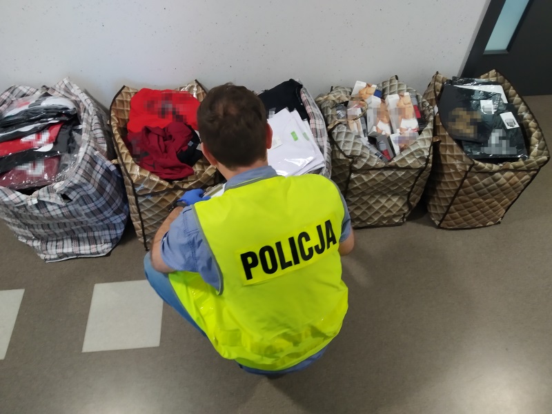Podczas przeszukania stoiska policjanci zabezpieczyli łącznie ponad 1000 sztuk różnego rodzaju elementów odzieży m. in. koszulek, spodni oraz bielizny.