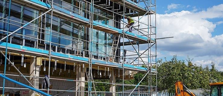 Na terenie spółki powstają lodowisko, kręgielnia i sala konferencyjna. Jak się okazuje, trwający wciąż stan epidemii chociaż nieco utrudnia, to na szczęście nie przeszkadza ekipom pracującym na budowie.