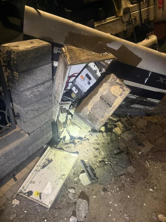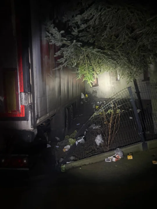 Autor: archiwum KPP Pleszew | Opis: Samochód ciężarowy staranował ogrodzenie i uderzył w dom