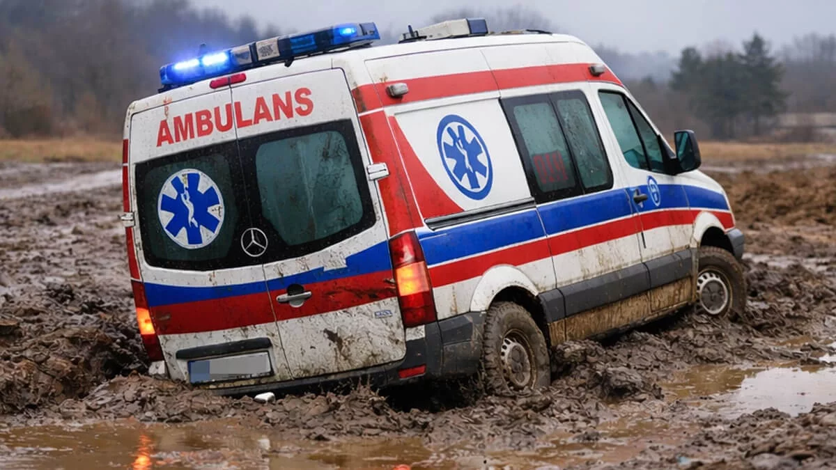 Błotnista droga uniemożliwiła przejazd karetce pogotowia