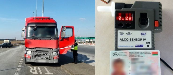 Do zdarzenia doszło na autostradzie A2. - Przemieszczający się 40-tonowym pojazdem autostradą A2 Białorusin, wydmuchał odpowiednio stężenia alkoholu: 0,27 mg/l i 0,22 mg/l, co w przeliczeniu daje około pół promila. Takie stężenie zakwalifikowane jest już jako przestępstwo - informuje rzecznik poznańskiego inspektoratu WITD.