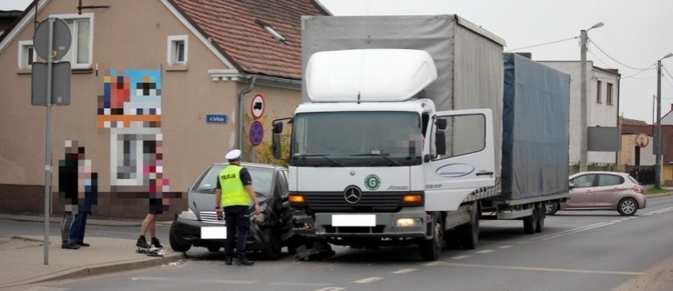 Policja relacjonuje, że ciężarówka nie ustąpiła pierwszeństwa kierującej mercedesem na skrzyżowaniu ulic Śląskiej i Kołłątaja. Kobieta kierująca osobówką trafiła do szpitala.
