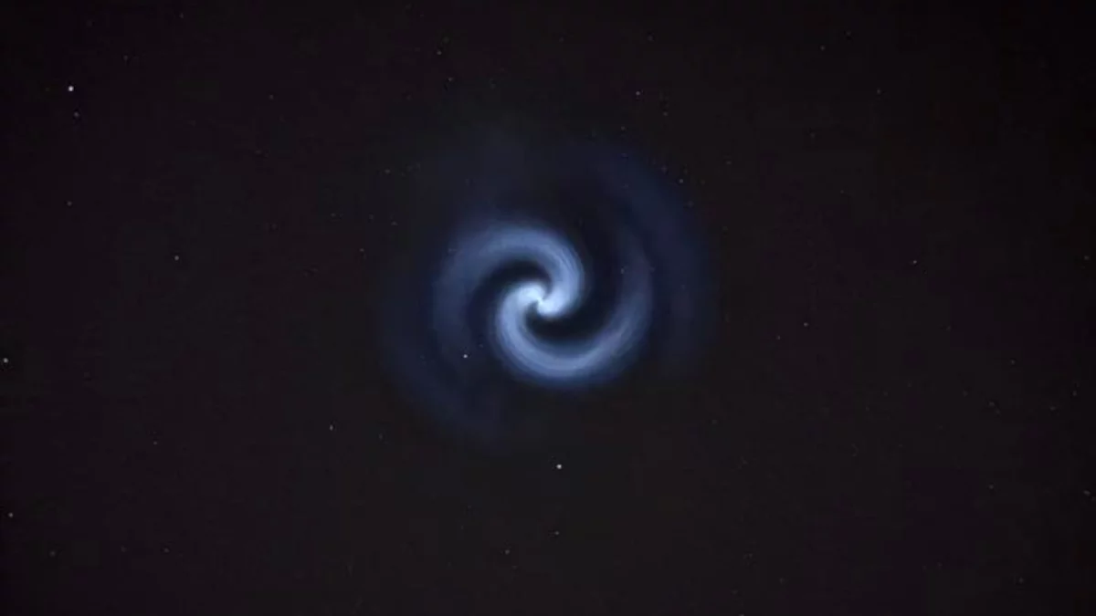 Świetlisty wir na niebie. Zrzut paliwa z Falcona 9?