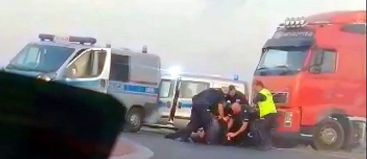 Wielkopolska. Do redakcji portalu Rawicz24 dotarło nagranie internauty, na którym widać całą akcję zatrzymania kierowcy volvo. Mężczyzna był tak agresywny, że do obezwładnienia go przystąpiło aż sześciu funkcjonariuszy. Użyto także gazu łzawiącego.