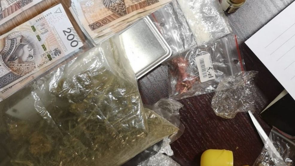 Funkcjonariusze postanowili przeszukać miejsce zamieszkania mężczyzny. Podczas czynności zabezpieczyli haszysz, marihuanę, kokainę, tabletki ekstazy, amfetamine oraz „ciasteczka” z zawartością THC. Dodatkowo mundurowi znaleźli m.in. szklaną butelkę z oleistą substancją, kilka sztuk atomizerów i opakowanie ze szklanymi lufkami.