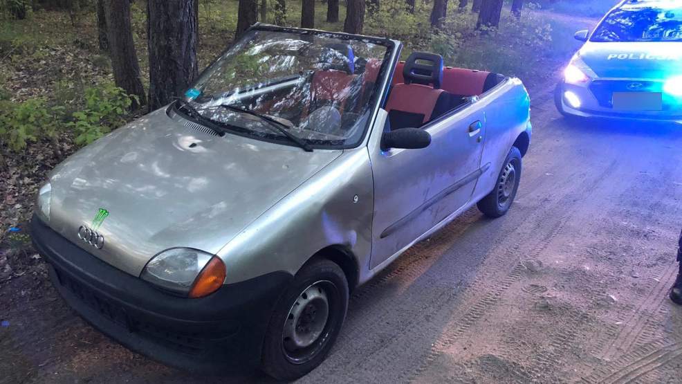 Okazało się, że na samochód posiadał znaczek audi, ale w rzeczywistości było... fiatem. Brak dachu to po prostu wynik kreatywności właściciela, który postanowił odciąć dach od całej konstrukcji. Pojazd w takim stanie nie miał prawa wyjechać na drogę.