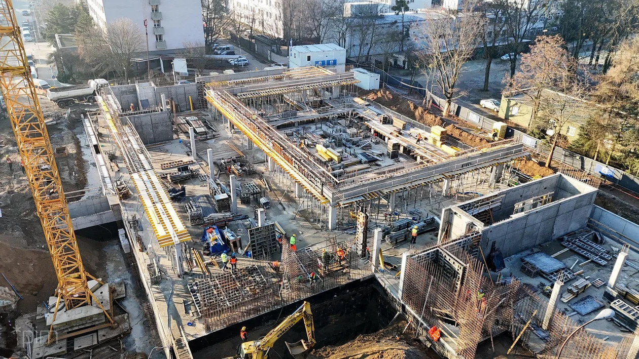 Dziś już prace dotyczące fundamentów, ścian i stropu piwnic mamy za sobą. Aktualnie wykonawca koncentruje się na budowie naziemnych kondygnacji. Trwają prace zbrojarskie i murarskie, ściany zewnętrzne pną się do góry. W środku, oprócz głównej hali basenowej, będzie też np. sala do rehabilitacji i pomieszczenia dla obsługi - mówi Tomasz Płóciniczak, wiceprezes spółki Poznańskie Inwestycje Miejskie.