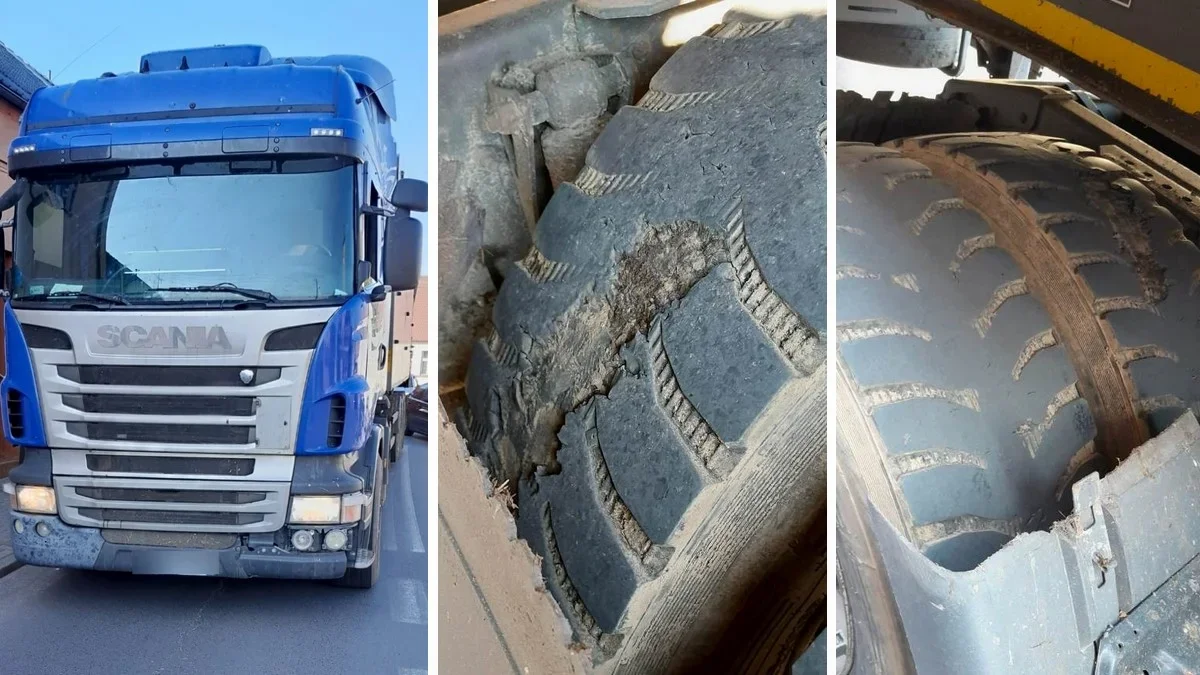 W Dolsku patrol śremskiej drogówki zatrzymał do kontroli ciężarówkę. Okazało się, że stan opon pojazdu był fatalny - można było zobaczyć na ich powierzchni siatkę.