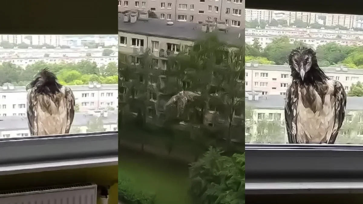Pod koniec maja w Poznaniu pojawił się imponujący ptak o długości ciała ponad 120 cm i rozpiętości skrzydeł dochodzącej do 3 m. Nagranie orłosępa siędzącego na parapecie bloku - wykonane przez mieszkańca - stało się hitem internetu.