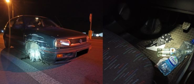 Funkcjonariusze policji podczas patrolu w Kępnie byli świadkami bardzo nietypowej sytuacji. Do kontroli zatrzymali Volkswagena Golfa, który nie miał przedniego koła. Gdyby tego było mało, kierowca w momencie zatrzymania trzymał w ręce butelkę wódki.