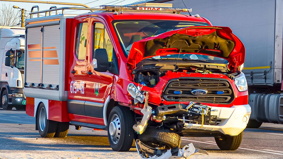 Wielkopolska. Klęka koło Jarocina. Do niebezpiecznego zdarzenia z udziałem wozu bojowego Ochotniczej Straży Pożarnej doszło na skrzyżowaniu drogi lokalnej z drogą krajową nr 11.