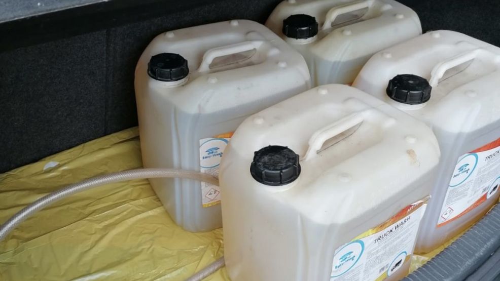 Na parkingu za stacją, na którym przebywały głównie tiry funkcjonariusze znaleźli 20-litrowy baniak z benzyną. Okazało się, że na parkingu stoi też samochód. Policjanci znaleźli w nim sprawcę zamieszania, który jak się okazało … kradł benzynę z zaparkowanych tirów.