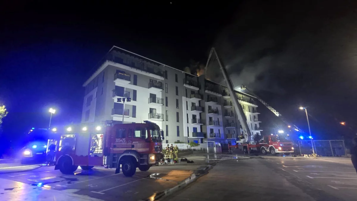 Zapaliło się poddasze pięciokondygnacyjnego budynku mieszkalnego przy ul. Krańcowej w Poznaniu. Straż pożarną zaalarmowano kwadrans przed godz. 19.00.