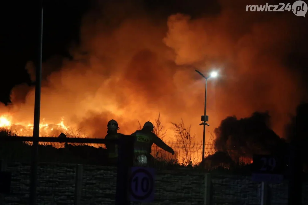 Strażacy walczą z żywiołem w Rawiczu. Płonie hałda składowanych odpadów. Na miejscu pracują strażacy z całego powiatu.