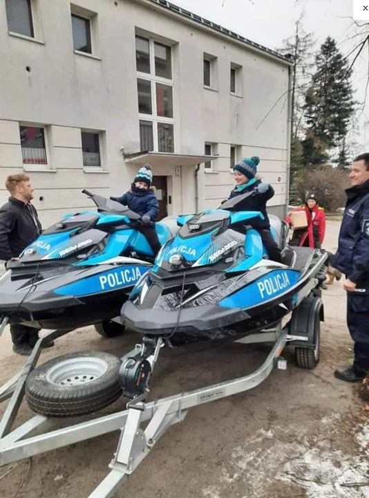 Podczas spotkania z dziećmi z poznańskiej szkoły zaprezentowano również skutery wodne, z których korzystają wodniacy w trakcie służby na wodzie.