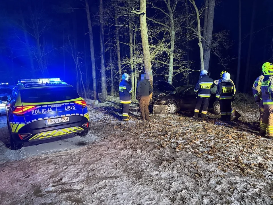 Mężczyzna usilnie próbował uciec, następnie wjechał w teren leśny, gdzie stracił panowanie nad pojazdem. Tam kierujący uderzył w przydrożne drzewo - relacjonują przedstawiciele Komendy Powiatowej Policji w Środzie Wielkopolskiej.