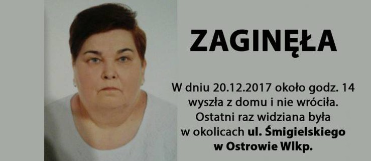 Kobieta wyszła z domu w środę, 20 grudnia około godz. i nie wróciła. Ostatni raz widziana była w okolicach ul. Śmigielskiego w Ostrowie Wlkp.
