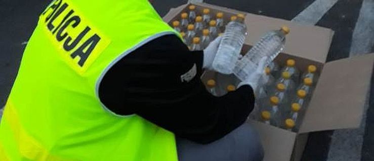 Okazało się, że kierowca przewoził samochodem kartony, a w nich plastikowe butelki z nielegalnym alkoholem.