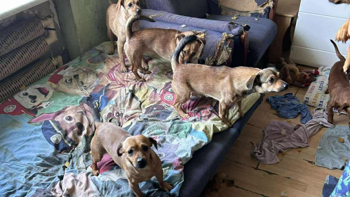 Na jednej z posesji znaleźli aż 41 psów - od kilkutygodniowych szczeniąt, po zwierzęta starsze. Czworonogi były w złym stanie. Jak wskazują pracownicy schroniska, miały m.in. guzy, przerośnięte pazury, świerzb, wyłysienia, zaburzenia behawioralne wynikające z izolacji, braku kontaktu i bólu.