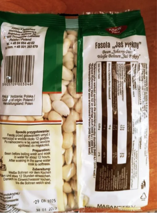 Ostrzeżenie Głównego Inpektoratu Sanitarnego dotyczy fasoli „Jaś Piękny” produkcji F.P.H.U. „KRAWPAK” Stanisław Krawczyk z Rogóźna Kolonii koło Tomaszowa Lubelskiego, z numerem partii 29.08.2025 i datą minimalnej trwałości 30.01.2027.