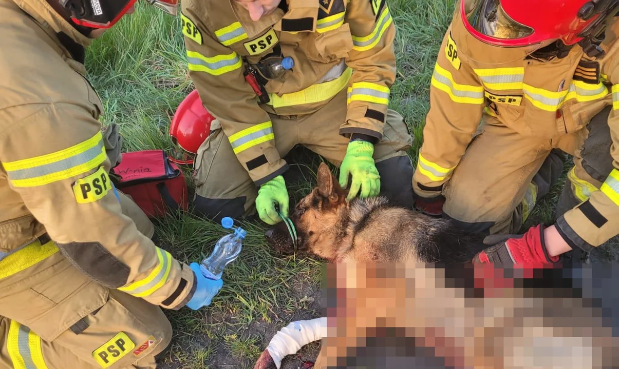 Po uwolnieniu czworonoga, strażacy opatrzyli ranną łapę i podali psu wodę. Pracownik wrzesińskiego schroniska, którzy przyjechał na miejsce wypadku, zabrał zwierzę do weterynarza.