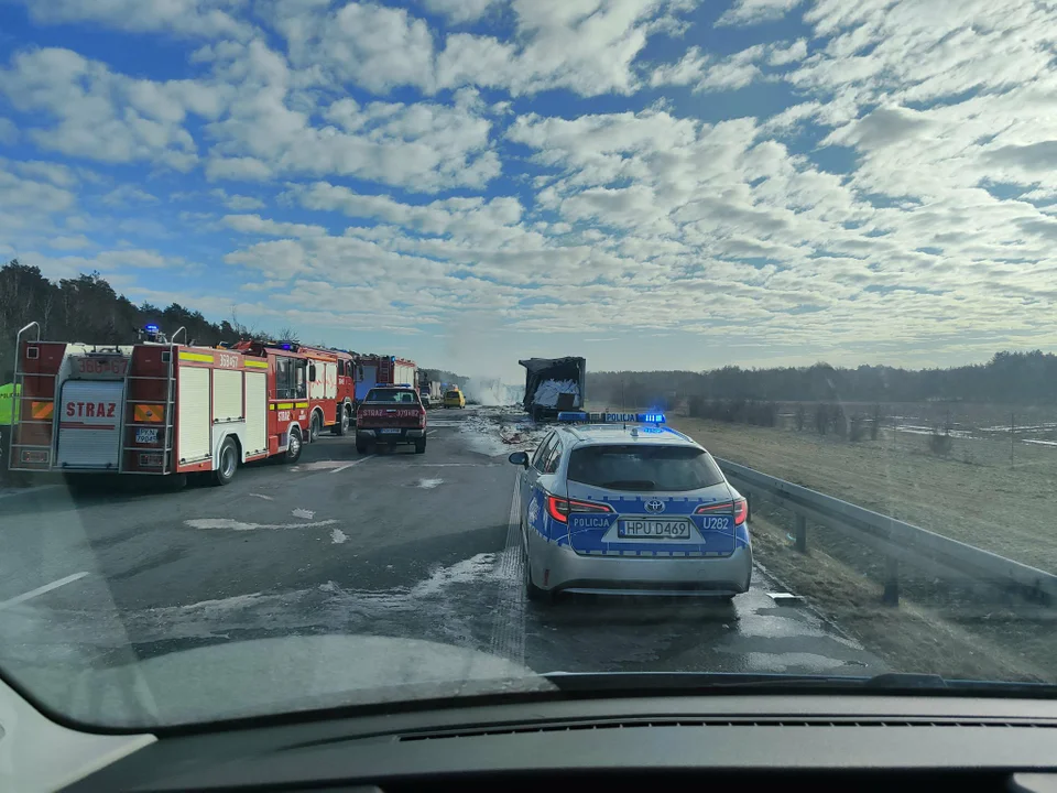 Ruch pojazdów w kierunku Warszawy został wstrzymany całkowicie samochody są kierowane na objazdy DK92. Decyzją Państwowej Straży Pożarnej na czas prowadzenia akcji gaśniczej zablokowano również ruch pojazdów w kierunku Poznania - informuje Komenda Wojewódzka Policji w Poznaniu.