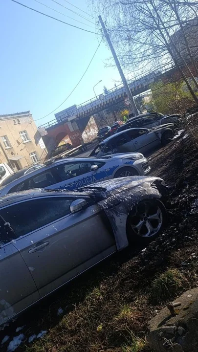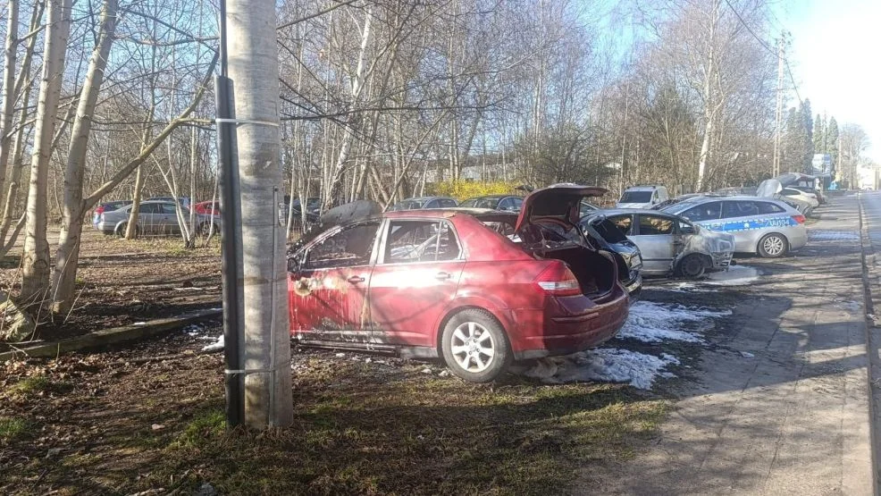 Straż poznana ugasiła ogień. Policjanci ustalili właścicieli spalonych pojazdów.