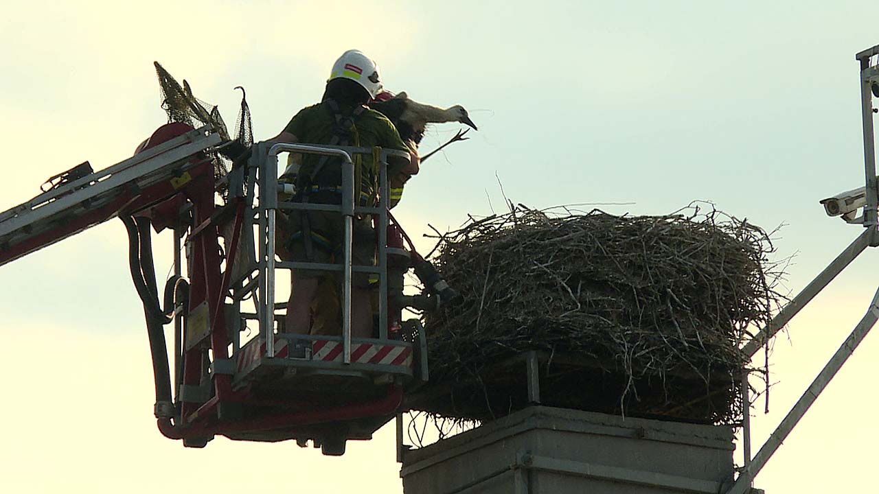 Zorgnizowano akcję ratunkową - pod gniazdo dotarli strażacy z Ostrowa i Przygodzic, a także osoby zaangażowane w projekt obserwacji bocianiego gniazda.