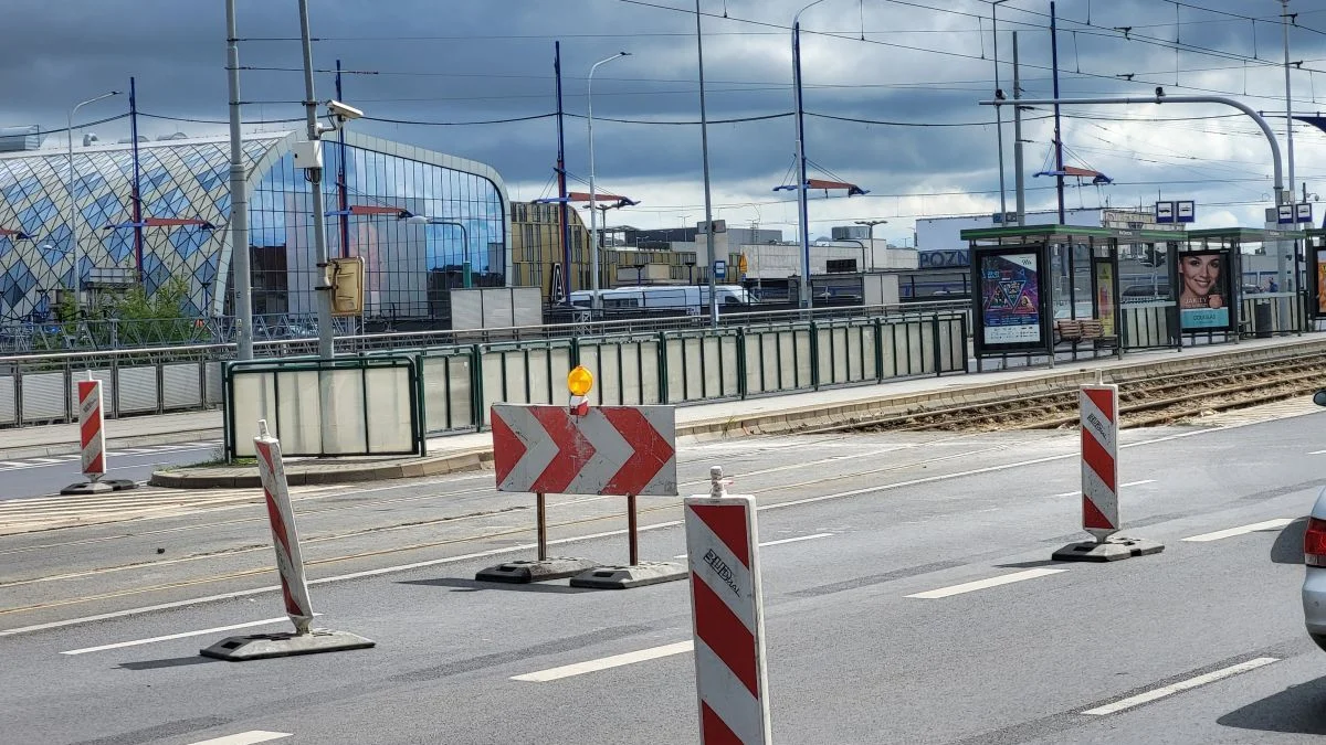 - Zwężenie jezdni w rejonie Mostu Dworcowego