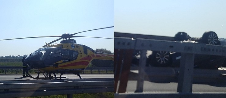 Samochód dachował na środku obwodnicy. S11 nieprzejezdna. Wezwano LPR