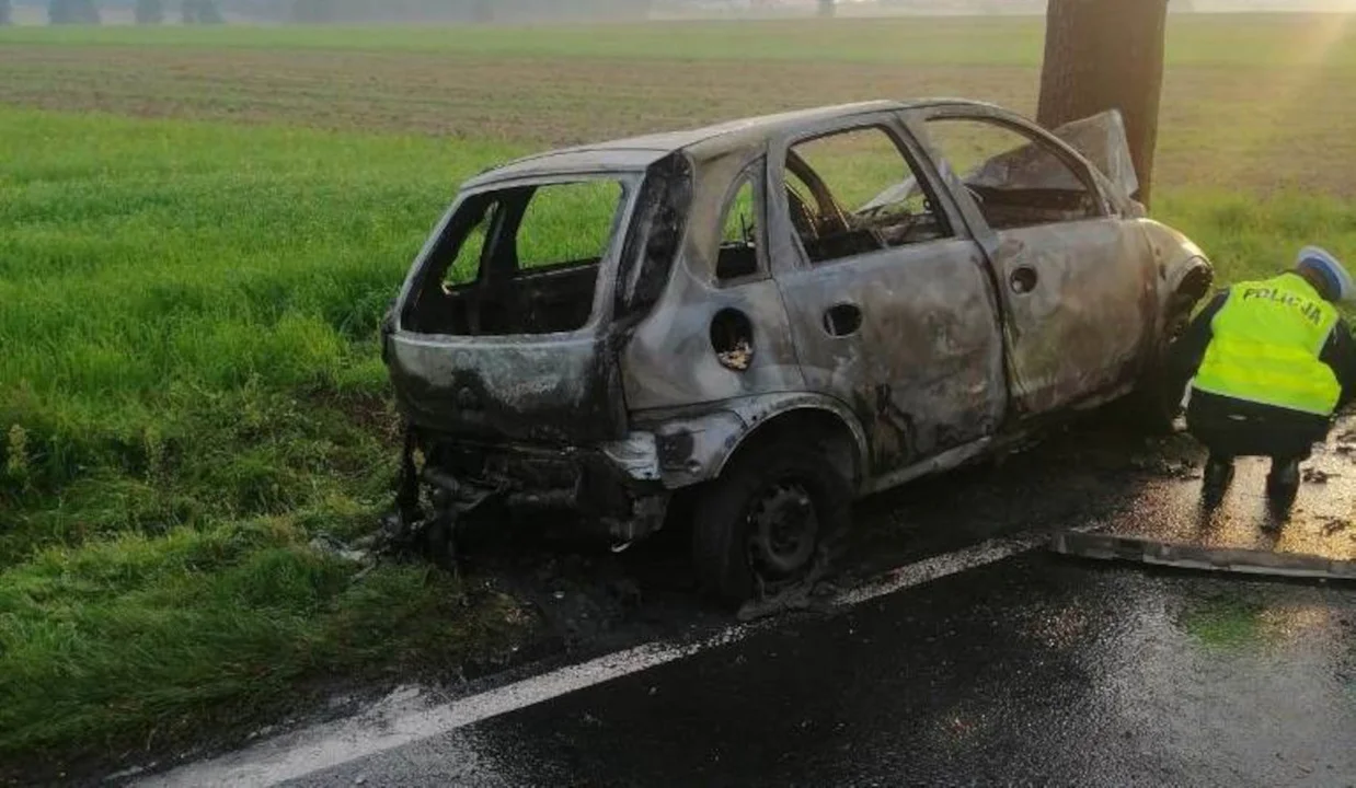 Kierowca spłonął w rozbutym aucie. Tragiczny wypadek pod Śremem