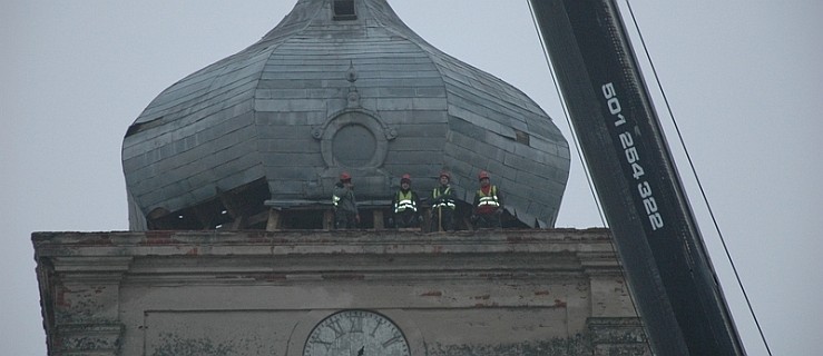 - Dźwig wysuwa się na 70 metrów, ale dziś nie ma takiej potrzeby – na 60 metrów będzie wysunięty. Szacujemy, że sama kopuła waży do 10 ton. Po zdjęciu pozostanie na terenie kościoła – powiedział Stefan Rzepka, wykonawca robót.
